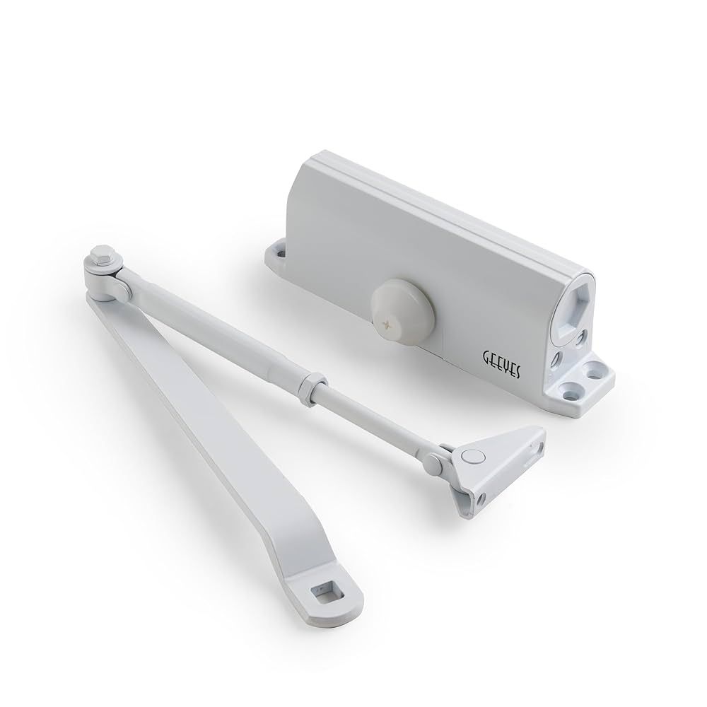 High-quality Geeyes door closer in white, designed for smooth and controlled door operation. Ensures safety, durability, and convenience for both residential and commercial applications.